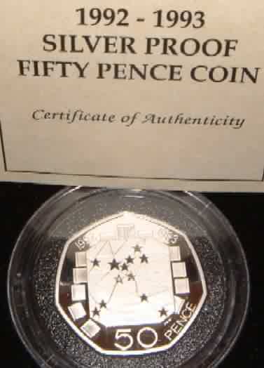 | 1992-93 silver | Britain's Presidency Council of Ministers & Single European Market 20th anniversary of Britain's entry into the EEC . In Royal Mint Box & COA |
