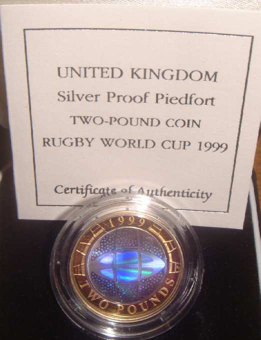 | 1999 silver | PIEDFORT Rugby World Cup Bi - Metal Hologram outer ring plated in .999 pure gold Boxed & COA |